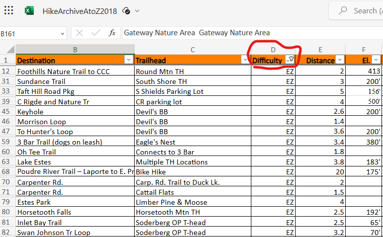 - EZ Hikes: 4 miles or less and 600' or less of elevation gain